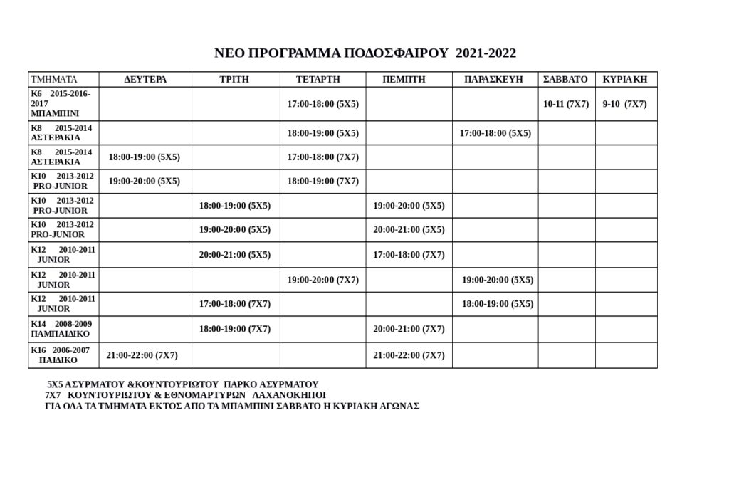 ΠΡΟΓΡΑΜΜΑ ΠΡΟΠΟΝΉΣΕΩΝ 2022-2023