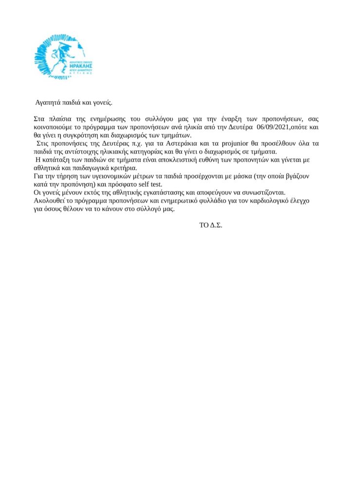 ΕΝΑΡΞΗ ΠΡΟΠΟΝΗΣΕΩΝ 06/09/21